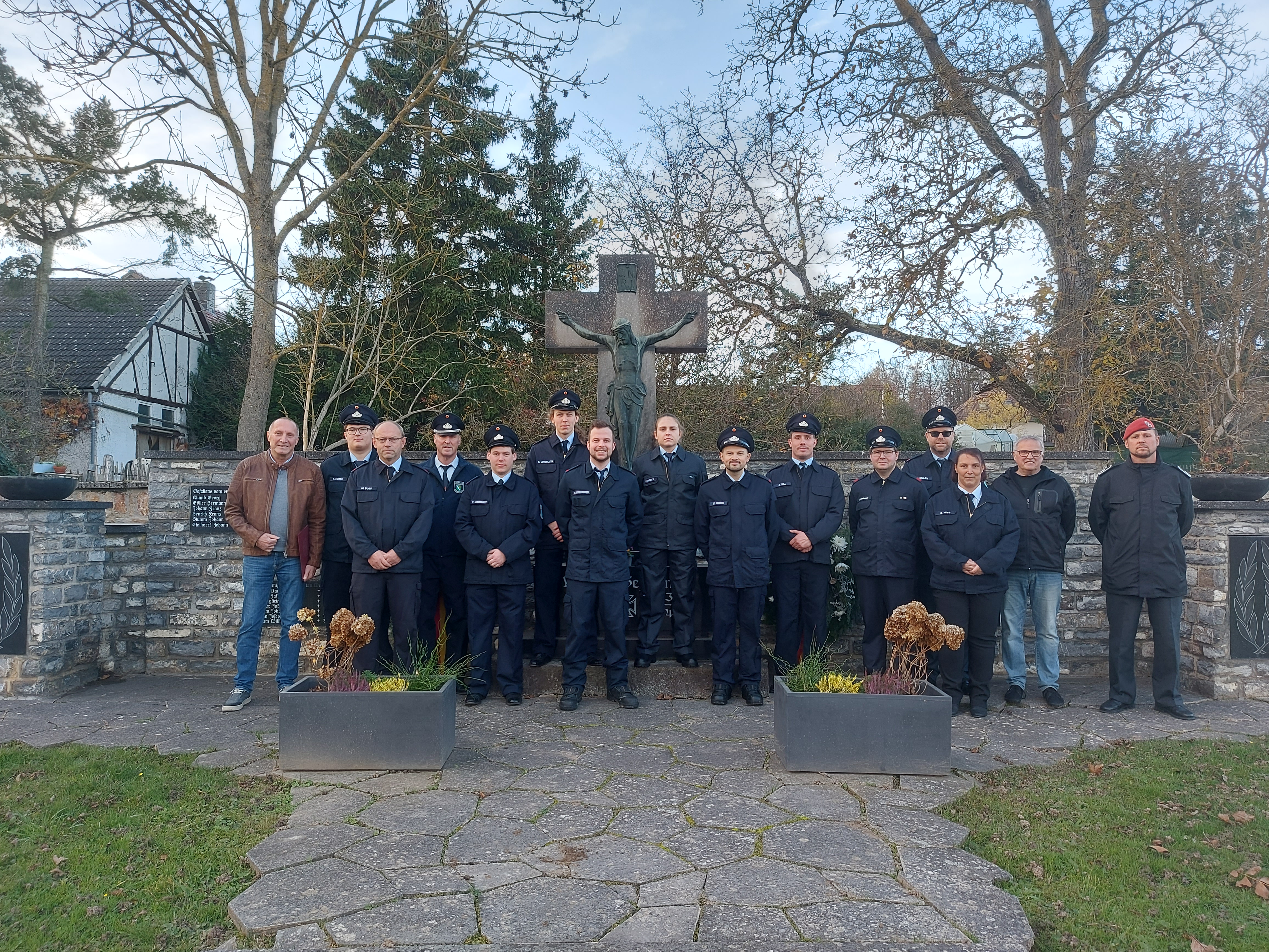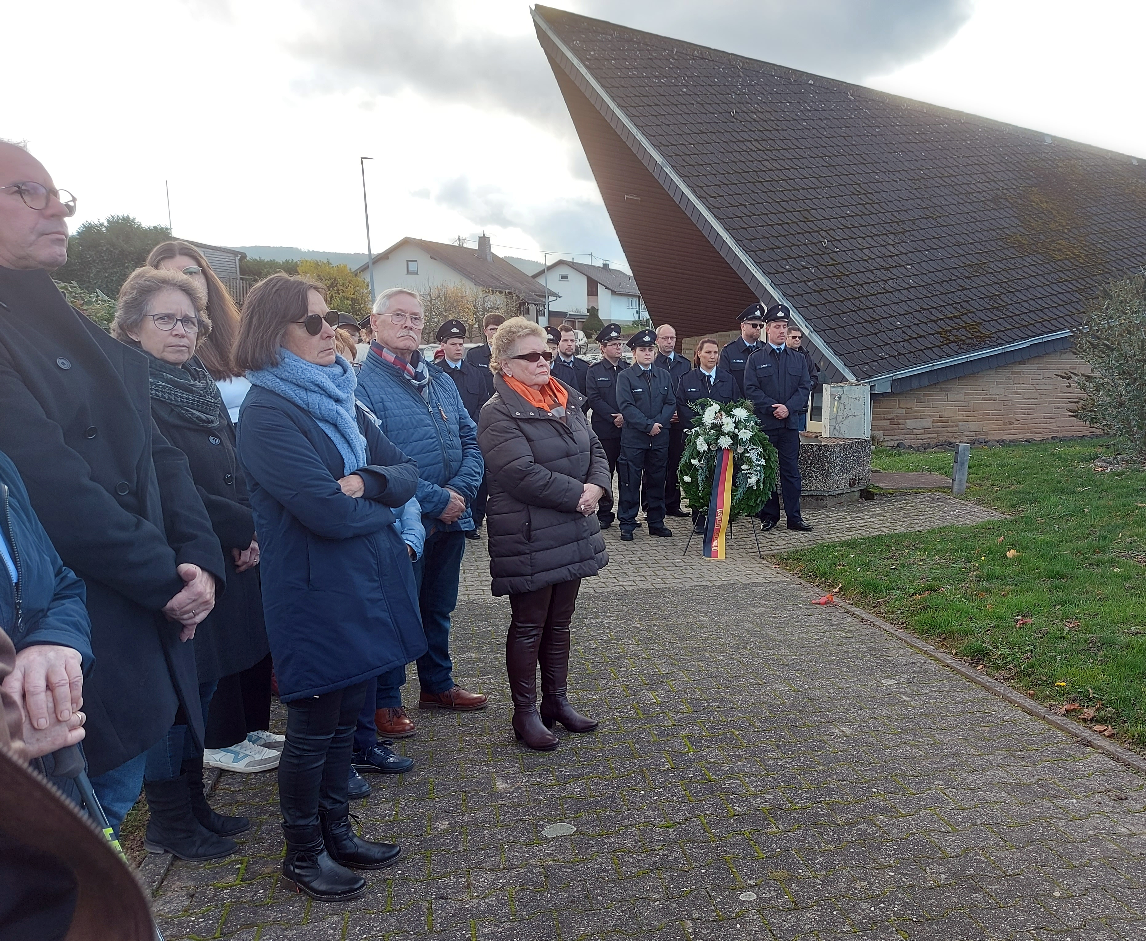 Vertreter der freiwilligen Feuerwehr Dörrebach legten zum Gedenken Kränze nieder. Für den entsprechenden musikalischen Rahmensorgte die Blaskapelle Dörrebach.
